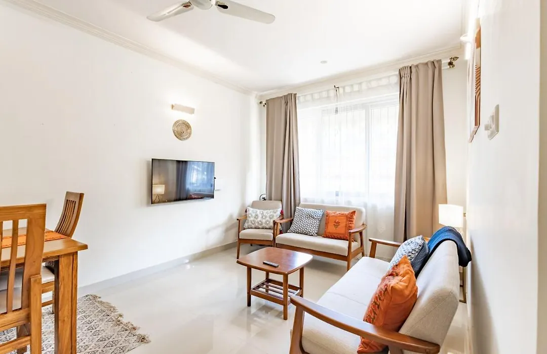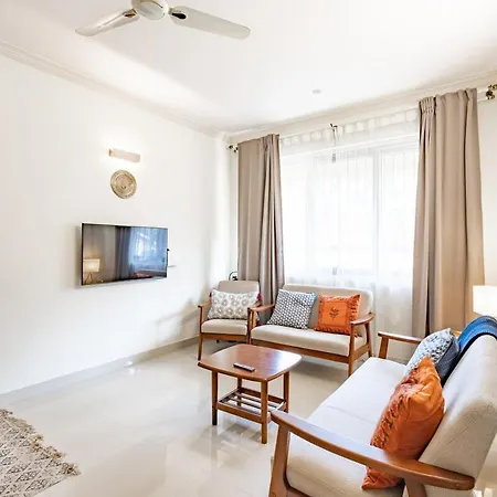 2 Bhk Duplex With Pool 4 Minutes To Benaulim Beach offers a seating area, as well as comforts like air conditioning. The apartment features a bathroom with a hairdryer. Furthermore, a walk-in shower, a separate toilet, and a washing machine is available.