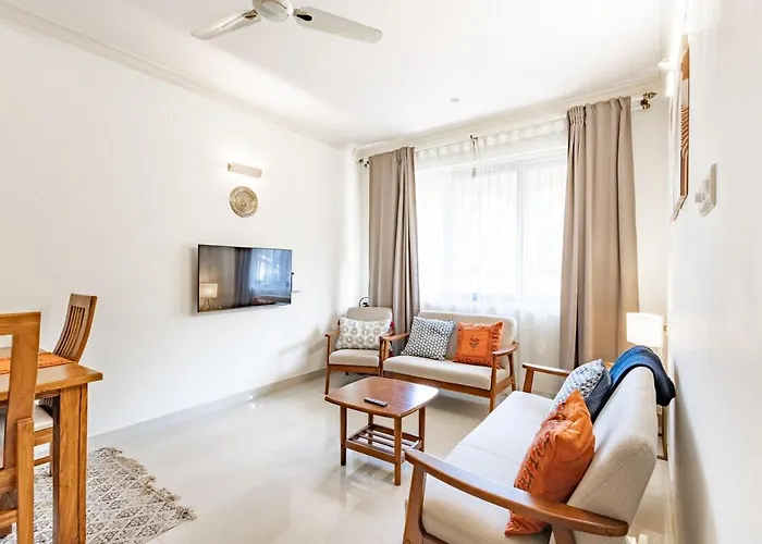 To enjoy your vacation in Benaulim, stay at the spacious 125 m² 2 Bhk Duplex With Pool 4 Minutes To Benaulim Beach, which is 3.4 km from the Aga Khan Children's Park and approximately a 10-minute ride from the Colva Beach. Guests can take a dip in a private pool to relax after a long day.